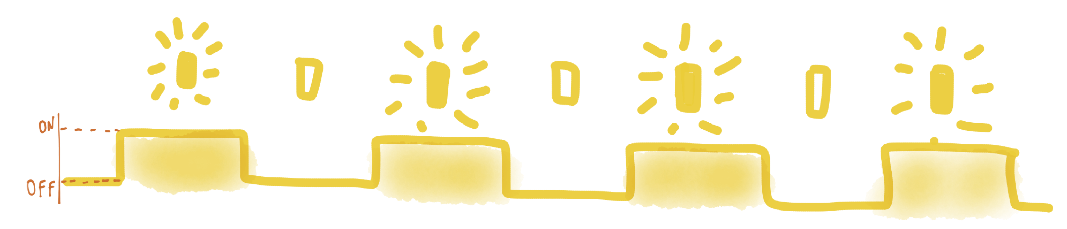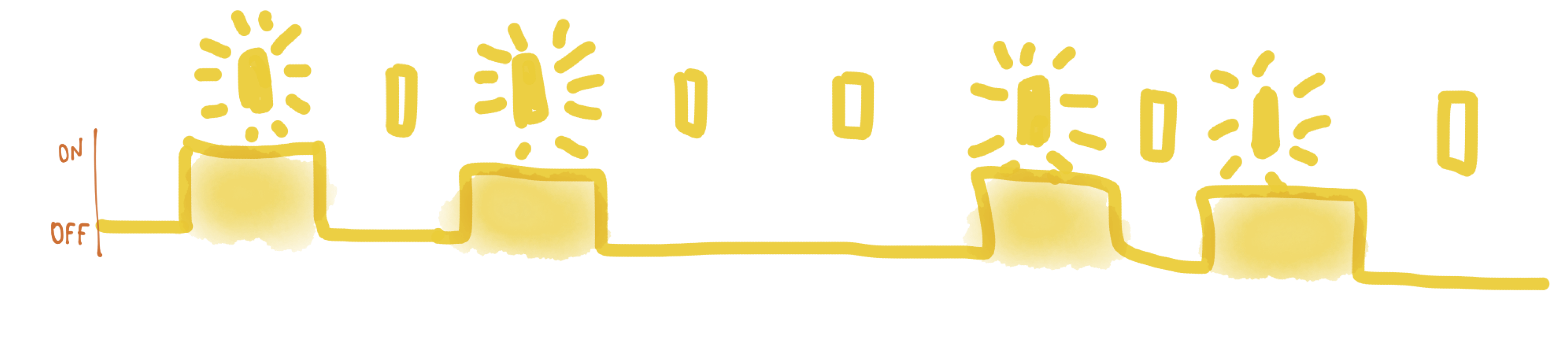 Fig 3a: A standard blinker typically blinks on and off in a regular pattern. The “on” and “off” periods usually take the same amount of time.