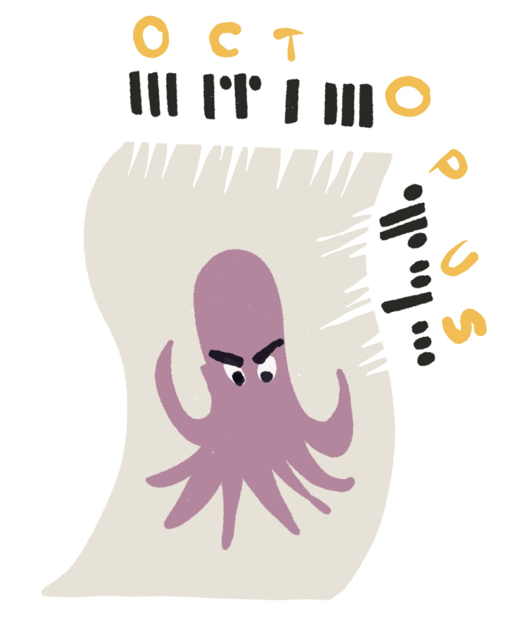 Fig 4: If we decode the Morse code at left, we will discover that the note says OCTOPUS. How extremely useful! Glad we wrote that down.