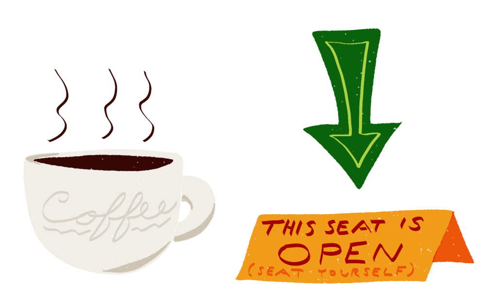 The easy solution is to have a set of “this seat / this part of the table is open, please feel free to use it!” signs at the front of the cafe (Figure 1).