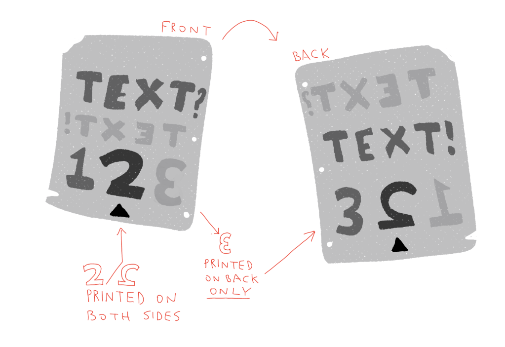 This mirror-image text contributes (very slightly) to darkening the overall text on the side that is intended to be read (Figure 1).