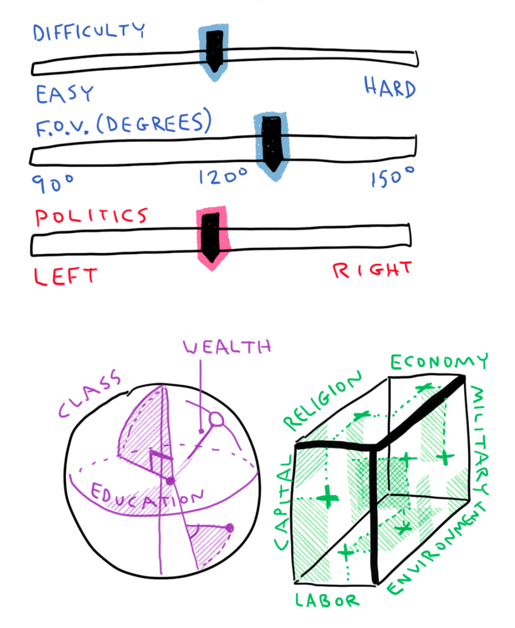 The implementation of this “politics slider” would vary on a per-game-genre basis.