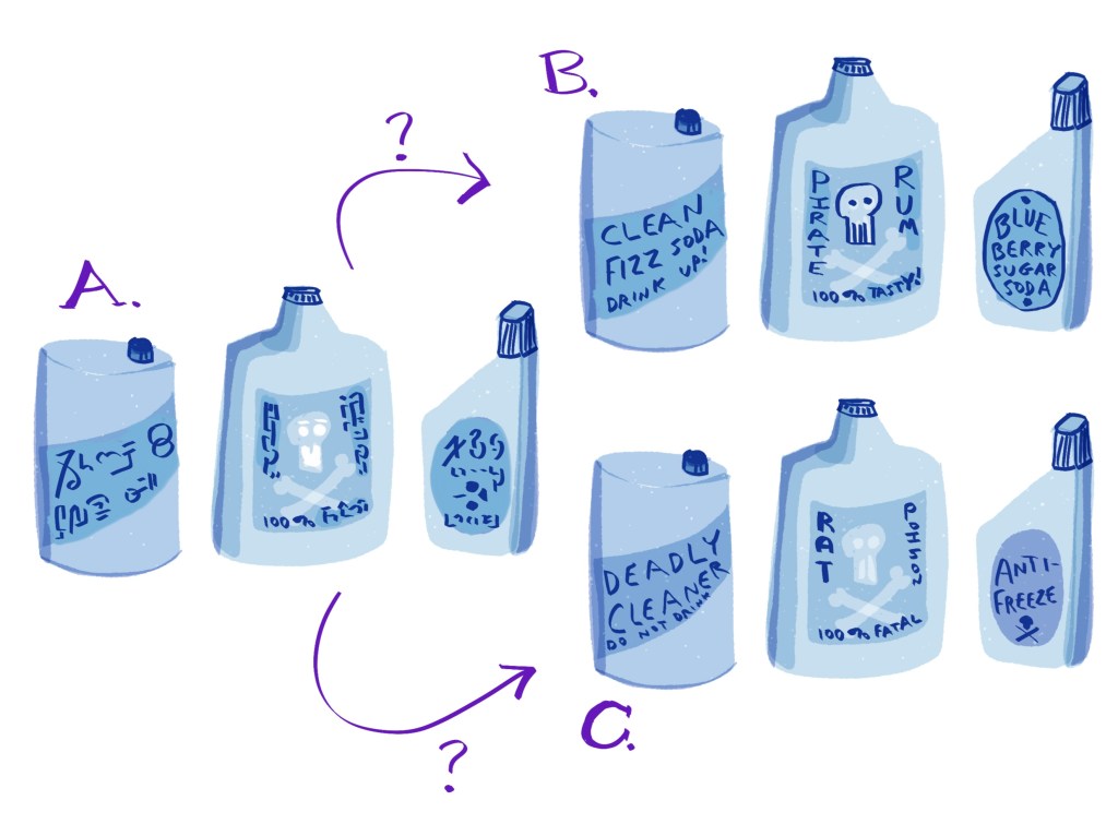 To a child who is illiterate and unfamiliar with conventional warning markings (e.g., a skull), a deadly chemical might plausibly seem like an interesting beverage (Figure 2). Some poisonous substances, like antifreeze, even have an appealing sugary taste.