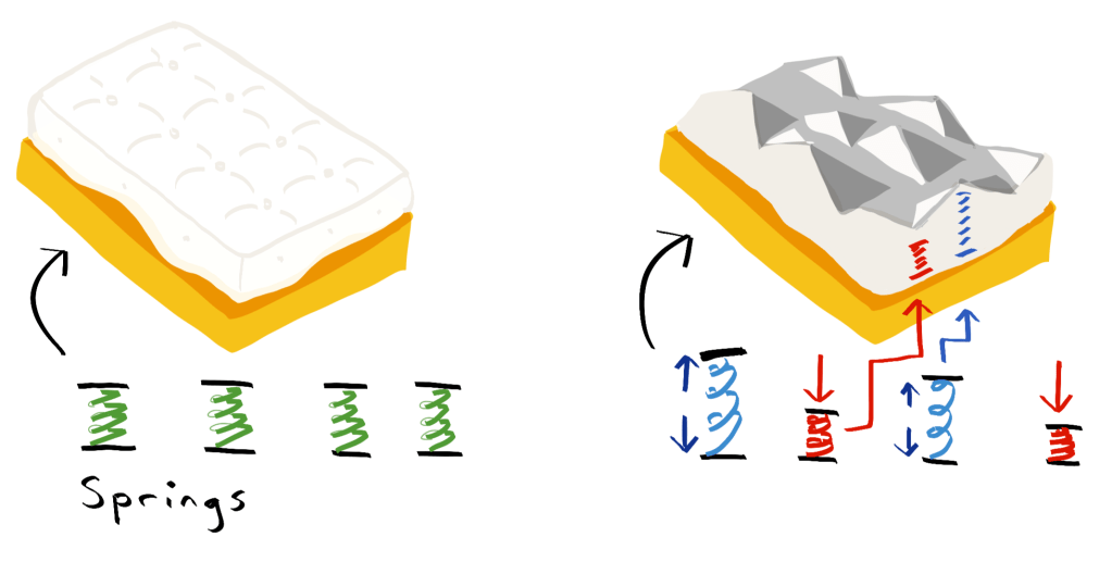 For this “progressively less comfortable mattress” system, we’ll need to go beyond just air mattresses: the bed will need an adjustable interior frame that can become jagged and angular (Figure 1), thus encouraging the bed’s occupant to get up.