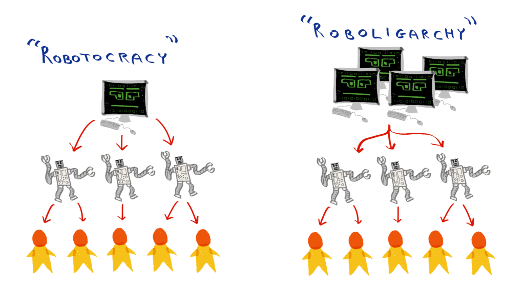 Somehow, English completely lacks a term for describing the upcoming governments of the future—there is NO quick way to describe “a dictatorship, but the (human) dictator rules over the citizenry using an army of robots.”