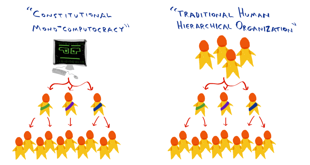 Fig. 5: If a computer runs all of society, it might have no need for an “administration” layer of government at all.