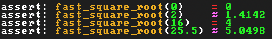 assert: fast_square_root(16) = 4