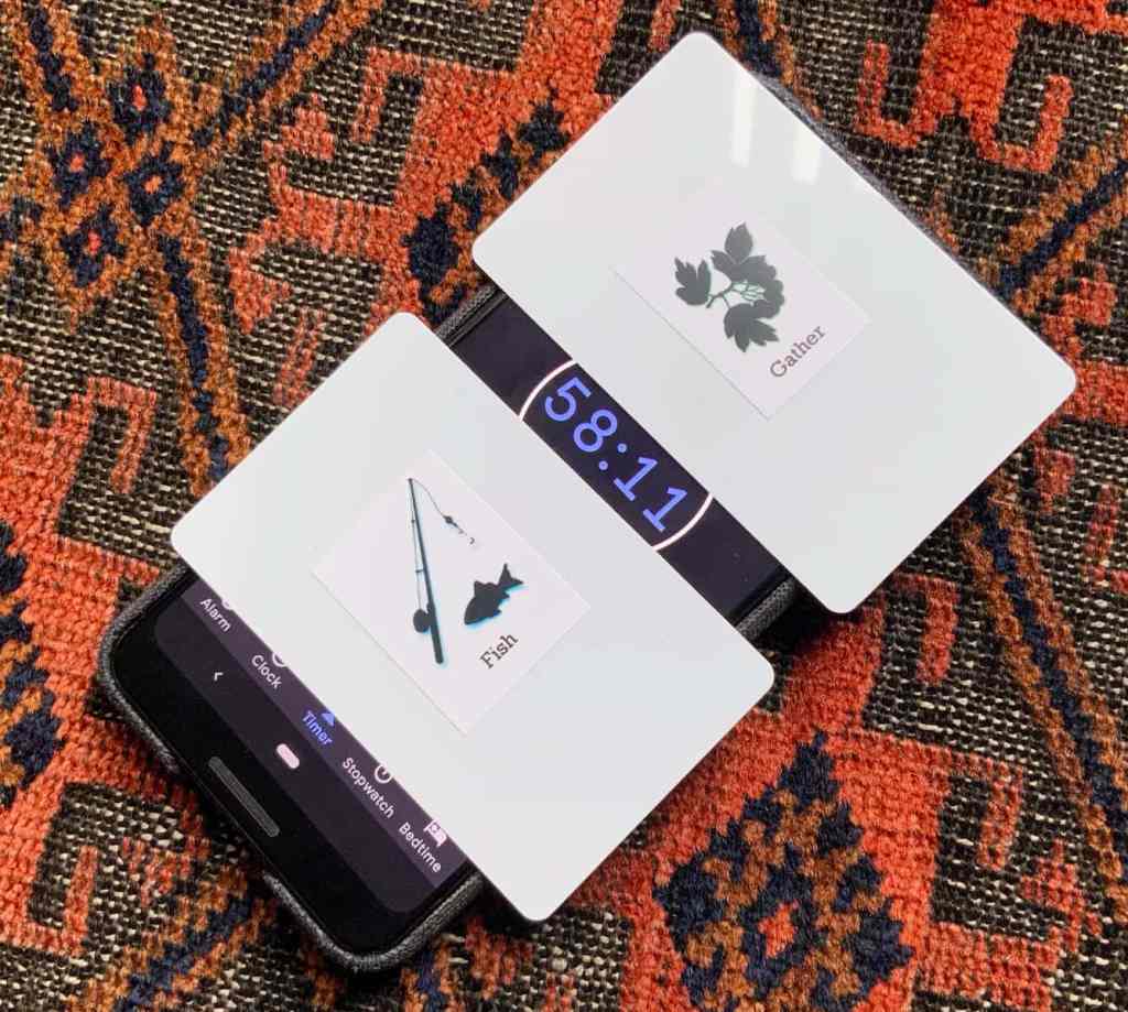 STEP 1: The dieting individual selects three cards and places them face-down on their cell phone (Figure 2). The phone’s timer is then set to ONE HOUR. (The dieter may not use their phone for that hour.)
