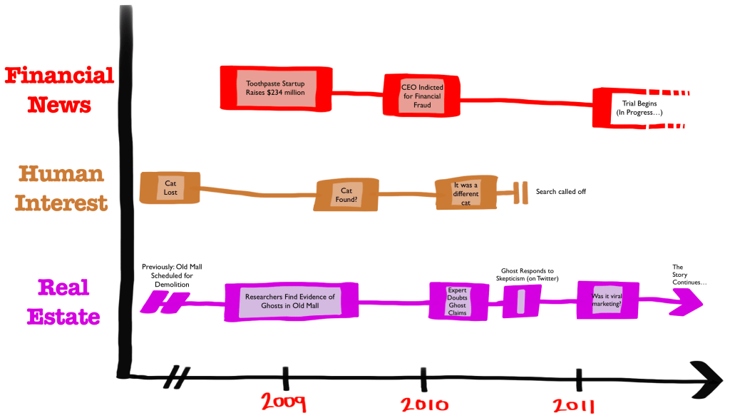 Fundamentally, this can be treated as a data-visualization problem: all articles about the same topic need to be linked together in an easy-to-browser chronological interface (Figure 1).