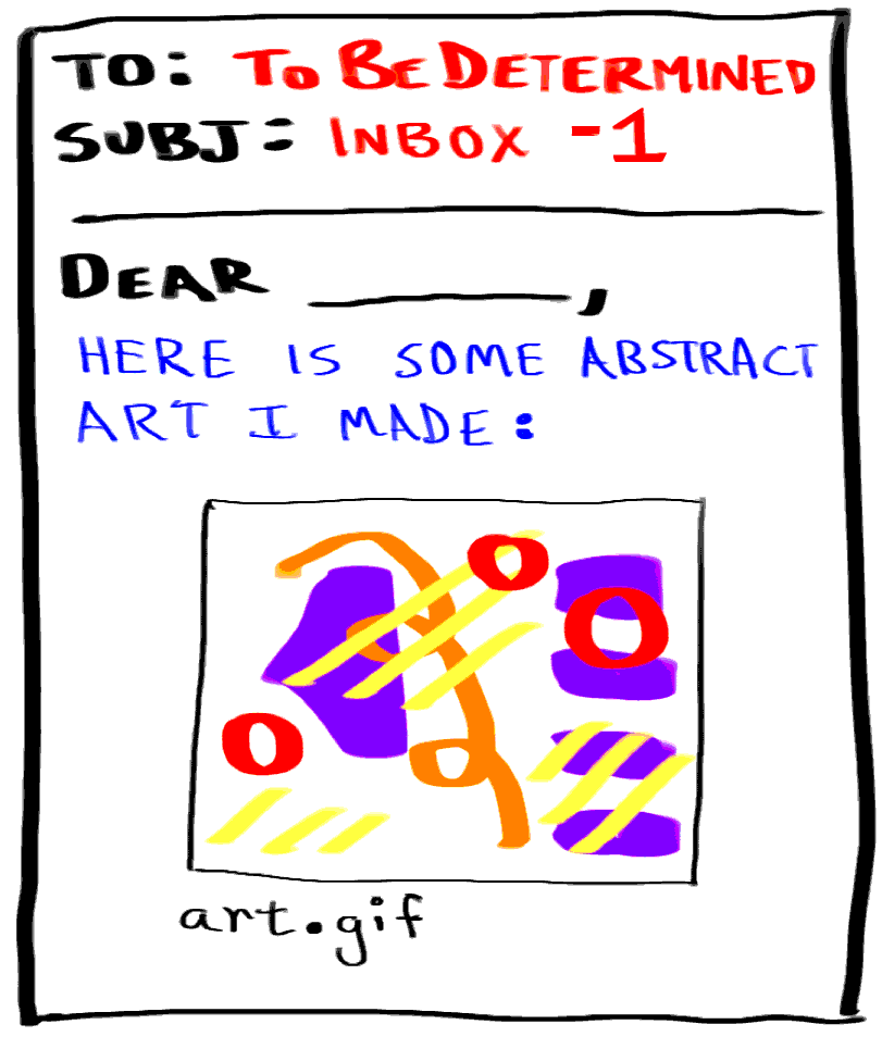 The pre-drafted emails in question need not be relevant to the topic at hand: the only important thing is that they contain a delightful “personal touch”: perhaps they could contain a poem, or a piece of abstract art (Figure 2), or musings on the Hundred Years’ War.