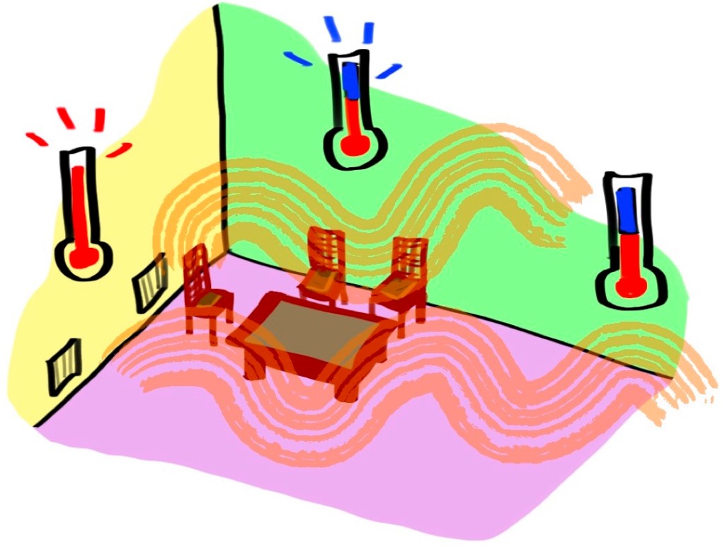 We can fix this “room is too large to heat/cool” problem without requiring architectural changes. Instead, the homeowner just buys a few enormous plastic cubes with a near-vacuum inside and places these in their house (Fig. 2).