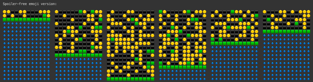 In this game, a player attempts to guess a 5-letter word in as few tries as possible. Each guess provides a user with a certain amount of information as to how close they are to the actual correct answer (in a fashion similar to the game “Mastermind”).