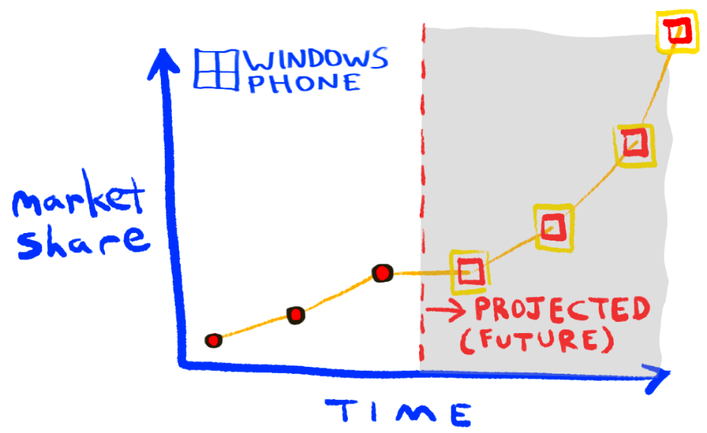 - The pitch: Mid-2010s: “Microsoft is a huge tech company that can integrate their OS with a new phone ecosystem, for the ultimate in synergy. If they entered the mobile phone market, they’d be almost guaranteed to succeed (Figure 1).”