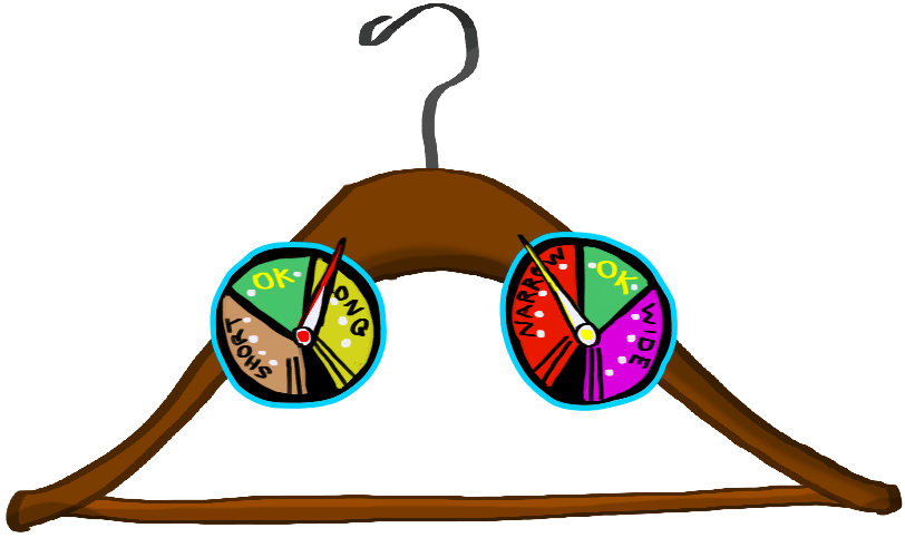 The simplest way to do this would be to add two dials to a garment hanger (Fig. 2) that you (the wearer), would manually set to indicate the quality of fit of the article of clothing in question.