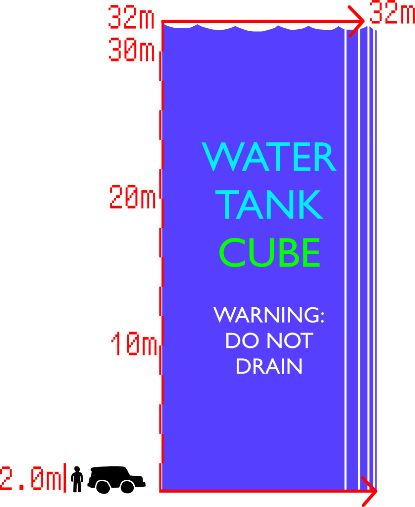 A water tank of this size turns out to be technically feasible, as demonstrated by the 45,000 cubic meter Tala tank in India, built in the early 1900s.