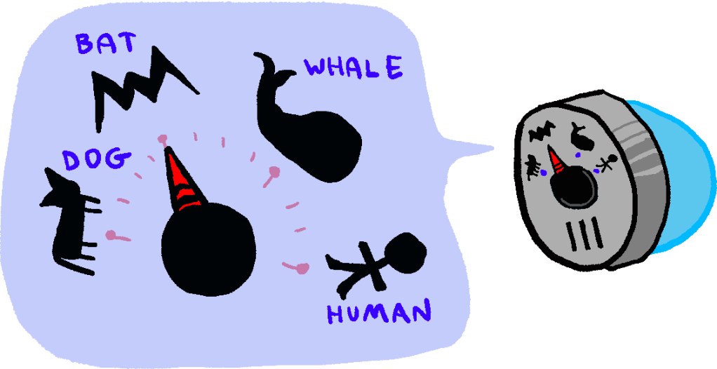 Some animals communicate at frequencies outside of the normal range of human hearing. For example, bats are constantly flying around and emitting shrill echolocation “pings,” but humans typically can’t hear them.