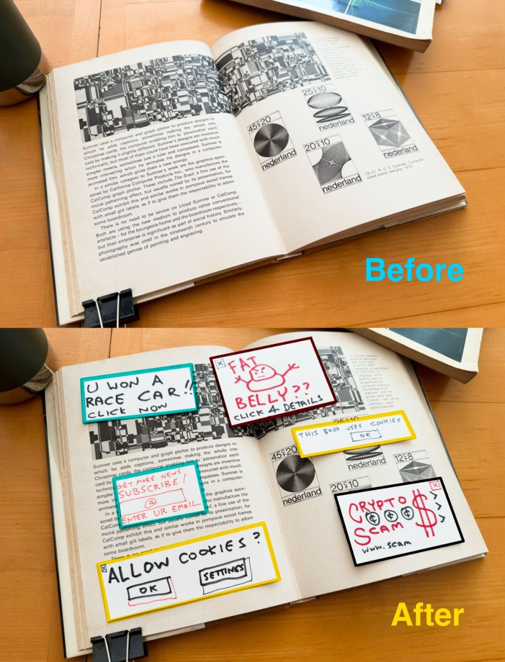 CONS: It would be difficult to update the physical pop-ups. What if the ads are no longer relevant, or new “cookie consent” laws are added? The book version of the pop-ups would, unfortunately, become out-of-date.
