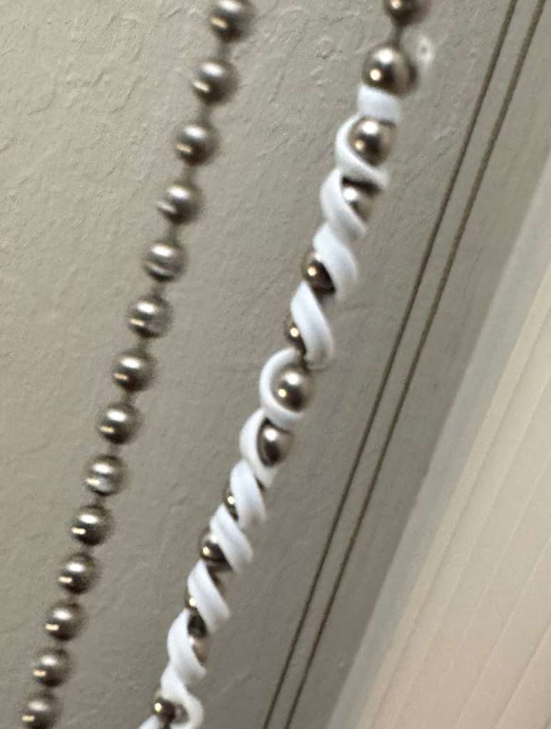 - A beaded metal cord that can be pulled to pivot the slats 90º to quickly open/close them.