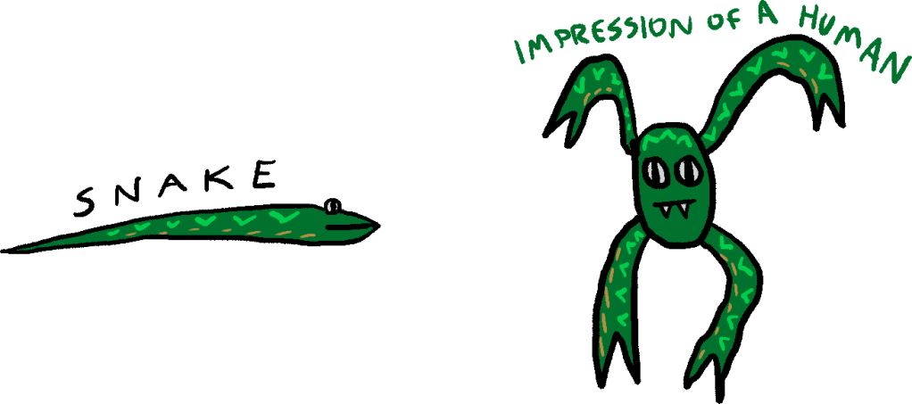 It’s unclear how exactly a snake would go about drawing, what with the no-hands and all, but might think of humans as shown in Figure 3.