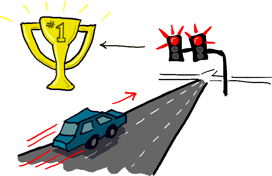 It’s surprising that people are so motivated to drive like maniacs to reach a red light, since there’s no prize for doing so. Let’s solve that problem!