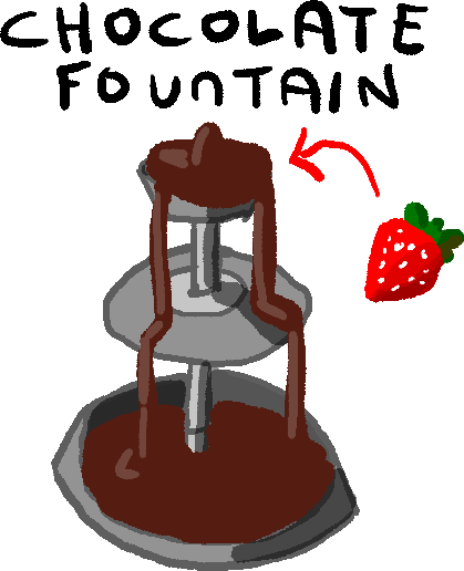 A “chocolate fountain” is a food-serving item that a person might see at a wedding or fancy party: it’s just a device that recirculates melted chocolate so that you can dip strawberries or marshmallows in it before chomping them (Figure 1). Fancy!